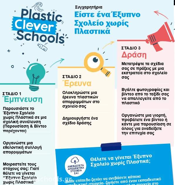 Το θέμα ακουμπά πάνω στην καθημερινή σχολική ζωή, αξιοποιούνται οι μαθητικές αναφορές και εμπειρίες, συναρθρώνεται η θεωρία με την πράξη, δίνεται νόημα και προοπτική στις δράσεις που θα ακολουθήσουν. Με στόχο την ενεργοποίηση των μαθητών/μαθητριών και όλων των μελών της σχολικής μας μονάδας συνδέουμε τις δράσεις μας με άλλα Σχολεία από την Ελλάδα και το εξωτερικό. Συμμετέχουμε σε Ευρωπαϊκές δράσεις ανάλογου θέματος με μαθητοκεντρική προσέγγιση. Με την συμμετοχή μας στις δράσεις των "Plastic Clever Schools" δώσαμε άλλη προοπτική στην προσπάθειά μας και οργανώσαμε τα επόμενα βήματά μας στα "Οικολογικά Σχολεία'. Υπεύθυνη Εκπαιδευτικός: Θεοδώρα Χανδρινού. Συγχαρητήρια σε όλα τα παιδιά για την ενεργή συμμετοχή και την δέσμευση για την επίτευξη των στόχων μας!