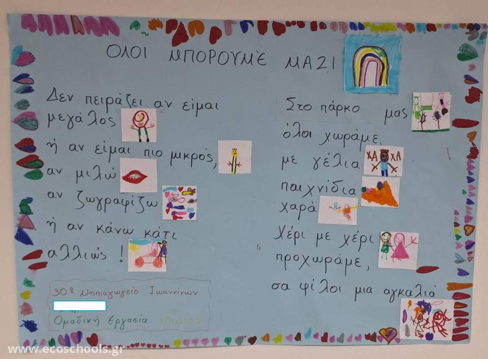 Επίσης στα πλαίσια της συμμετοχής μας στο μαθητικό διαγωνισμό που διοργανώνει το ΕΕΕΕΚ Ξάνθης με θέμα : ΑΥΤΟ ΠΟΥ ΜΑΣ ΕΝΩΝΕΙ – ΠΑΓΚΟΣΜΙΑ ΗΜΕΡΑ ΑΤΟΜΩΝ ΜΕ ΑΝΑΠΗΡΙΑ 2025, τα παιδιά των δύο τμημάτων δημιούργησαν εικονόλεξα και ελπίζουμε πως θα βάλουμε ένα λιθαράκι ώστε όλοι να υιοθετήσουν την έννοια της συμπερίληψης.