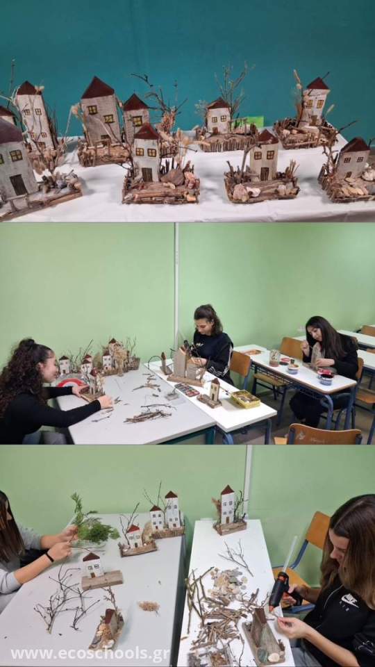 Στο πλαίσιο των περιβαλλοντικών δραστηριοτήτων του σχολείου μας, οι μαθητές δημιούργησαν οικολογικά σπιτάκια χρησιμοποιώντας φυσικά υλικά όπως ξύλο, ξερά κλαδάκια, χώμα και πέτρες. Η δράση αυτή είχε στόχο να ενισχύσει τη συνείδηση των μαθητών για την ανακύκλωση και την προστασία του περιβάλλοντος, ενώ ταυτόχρονα τους έδωσε την ευκαιρία να εκφράσουν τη δημιουργικότητά τους μέσα από φυσικά υλικά.