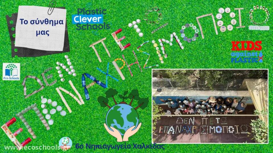 Το νηπιαγωγείο μας ανταποκρίθηκε για άλλη μια φορά στο κάλεσμα των Plastic Clever Schools για τη Διεθνή Ημέρα κατά της Πλαστικής Ρύπανσης και οργάνωσε μια σειρά δραστηριοτήτων με στόχο την ενημέρωση και ευαισθητοποίηση των παιδιών γύρω από το ζήτημα της πλαστικής ρύπανσης. Τα παιδιά συμμετείχαν σε σχολική συνέλευση, ενημερώθηκαν για τις επιπτώσεις του πλαστικού στο περιβάλλον και προχώρησαν σε καταμέτρηση των πλαστικών που χρησιμοποιούμε στην καθημερινότητά μας. Η δράση ολοκληρώθηκε με τη δημιουργία ενός συνθήματος που επέλεξαν τα ίδια τα παιδιά και εκφράζει το μήνυμα όλων μας: