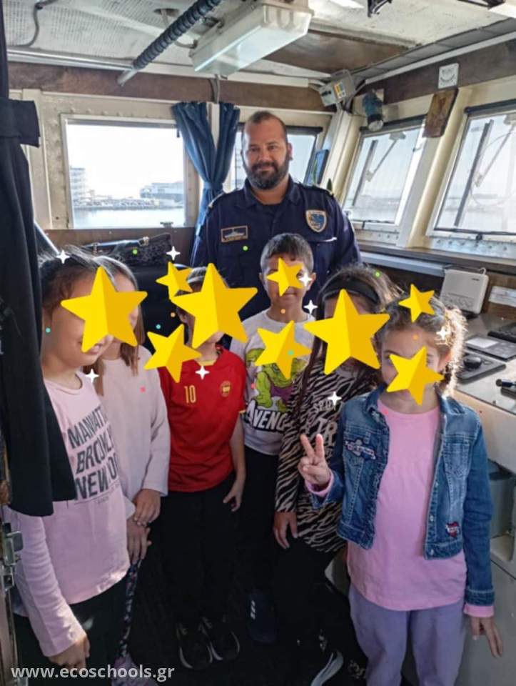 Ο καπετάνιος υποδέχτηκε τους μαθητές και τις μαθήτριες και περιηγήθηκαν στους χώρους του πλοίου.