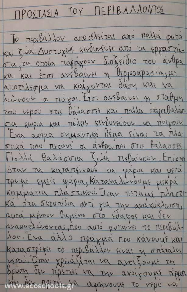 Οι μαθητές/τριες του Ε1 γράφουν εκθέσεις για το περιβάλλον και την προστασία τους.