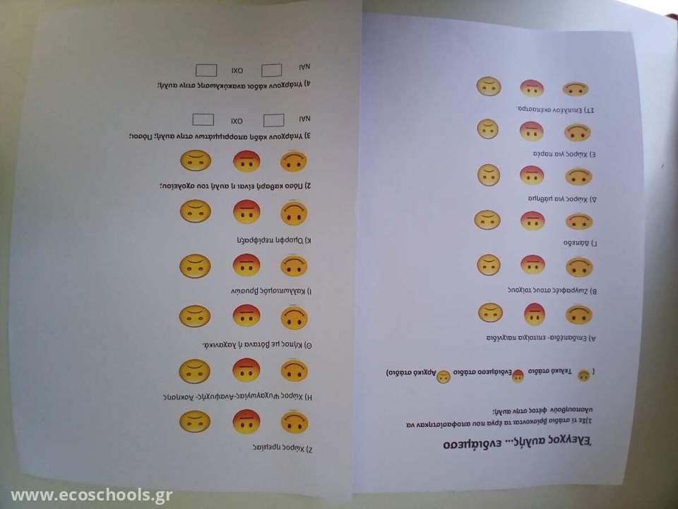 Ιδιαίτερη σημασία δόθηκε στη συμμετοχή των μαθητών στη διαδικασία του ελέγχου, καθώς η άποψή τους αποτελεί βασικό κριτήριο για την επιτυχία των παρεμβάσεων. Για τον σκοπό αυτό, δημιουργήθηκε ένα ειδικό φύλλο αξιολόγησης με εικόνες emoji, ώστε οι μαθητές να μπορούν να εκφράσουν τις απόψεις τους με τρόπο άμεσο και κατανοητό. Μέσα από αυτή τη διαδικασία, ενισχύθηκε το αίσθημα συμμετοχής και υπευθυνότητας των παιδιών.