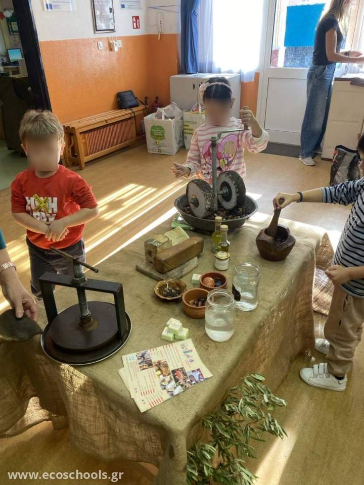 Στο τέλος του εργαστηρίου, η ομάδα «Παραδοσιακά Μονοπάτια» έκανε ένα όμορφο δώρο στα παιδιά μας: από ένα αναμνηστικό σαπούνι ελιάς! Έτσι, πήραν μαζί τους όχι μόνο τις γνώσεις και τις εμπειρίες, αλλά και ένα κομμάτι από τη φροντίδα και τις ευεργετικές ιδιότητες αυτού του ιερού δέντρου.