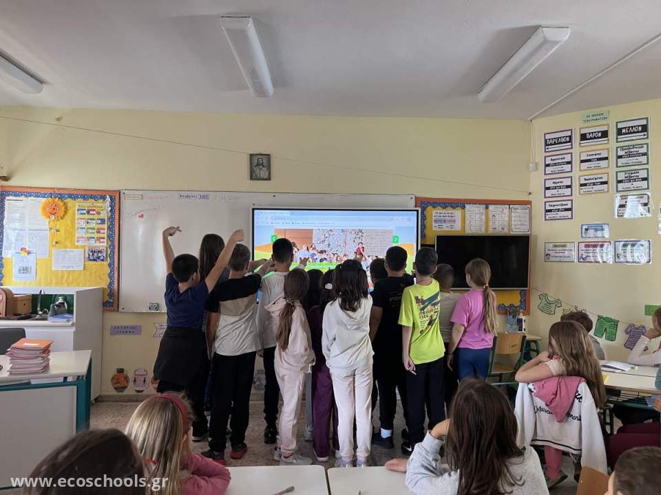 Οι μαθητές/ τριες της Ε' τάξης του σχολείου μας ανέλαβαν να υλοποιήσουν την ενημέρωση όλων των μαθητών/ τριών του σχολείου μας σε σχέση με το Πρόγραμμα των Οικολογικών Σχολείων που συμμετέχουμε και φυσικά προσπάθησαν να ευαισθητοποιήσουν όλους τους μαθητές/ τριες στη δημιουργία οικολογικής συνείδησης. Στη συνέχεια, παρουσίασαν ένα μέρος των εργασιών που έχουν γίνει τα προηγούμενα χρόνια και ζήτησαν τη βοήθεια και τη συμμετοχή όλων για να γίνει το σχολείο μας πιο "οικολογικό". Στη συνέχεια, συζήτησαν για τον Οικο-κώδικα του σχολείου μας και κόλλησαν στους τοίχους όλων των τάξεων αφίσες που υπενθυμίζουν τη σωστή οικολογική μας συμπεριφορά!