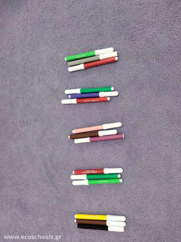 Σχέδιο εξοικονόμησης καθαρού νερού στο Νηπιαγωγείο 1. Αρχικά φτιάξαμε έναν ημερήσιο πίνακα καταγραφής και ορίσαμε ομάδες εποπτείας. 2.Καθημερινά για μια εβδομάδα (5 ημέρες) καταγράφαμε τη χρήση νερού στα 2 καζανάκια. 3. Αφού ολοκληρώθηκε η καταγραφή προχωρήσαμε στην καταμέτρηση και απαντήσαμε στο ερώτημα : Πόσες φορές ‘πατήσαμε’ το καζανάκι την κάθε ημέρα; 4. Πειραματιστήκαμε για να βρούμε τον τρόπο υπολογισμού του μέσου όρου κατανάλωσης και καταλήξαμε να χρησιμοποιήσουμε τους μαρκαδόρους. Διαπιστώσαμε ότι χρησιμοποιούμε περίπου 20 φορές την ημέρα τα καζανάκια στο Νηπιαγωγείο μας .