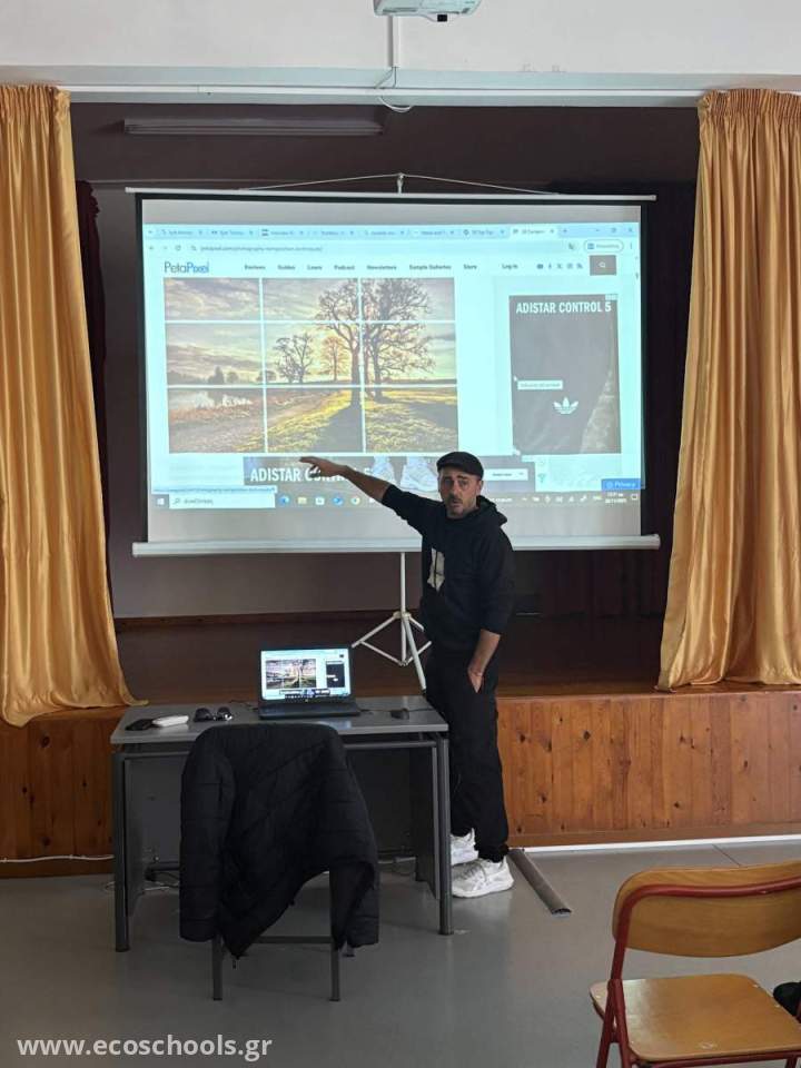 Την Παρασκευή 28/11/2025 είχαμε τη χαρά να υποδεχτούμε στο σχολείο μας τον Μάκο, καταξιωμένο και ιδιαίτερα αξιόλογο φωτογράφο. Μοιράστηκε μαζί μας την προσωπική του διαδρομή στη φωτογραφία, μια τέχνη που ξεκίνησε να τον συναρπάζει σε μια εποχή όπου δεν ήταν ακόμη ευρέως διαδεδομένη στη χώρα μας. Η επαγγελματική του πορεία αποδεικνύει πώς καταξιώνεται κανείς όταν ασχολείται με κάτι που τον γεμίζει και τον συναρπάζει.