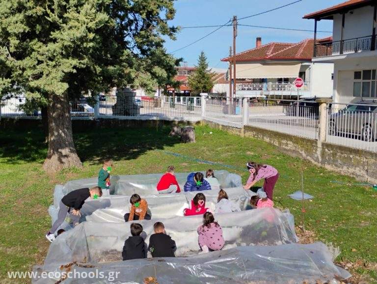 Με αίσθημα υπευθυνότητας και ομαδικό πνεύμα, οι μαθητές και οι μαθήτριες του σχολείου μας συμμετείχαν πρόσφατα σε μια σημαντική δράση φροντίδας των φυτών που έχουμε φυτέψει στο πλαίσιο του περιβαλλοντικού προγράμματος Carbon Farming. Καθώς ο χειμώνας έκανε αισθητή την παρουσία του με τις πρώτες χαμηλές θερμοκρασίες, κρίθηκε απαραίτητο να προστατεύσουμε τα νεαρά μας φυτά, ώστε να μπορέσουν να συνεχίσουν την ανάπτυξή τους χωρίς κίνδυνο από το ψύχος.
