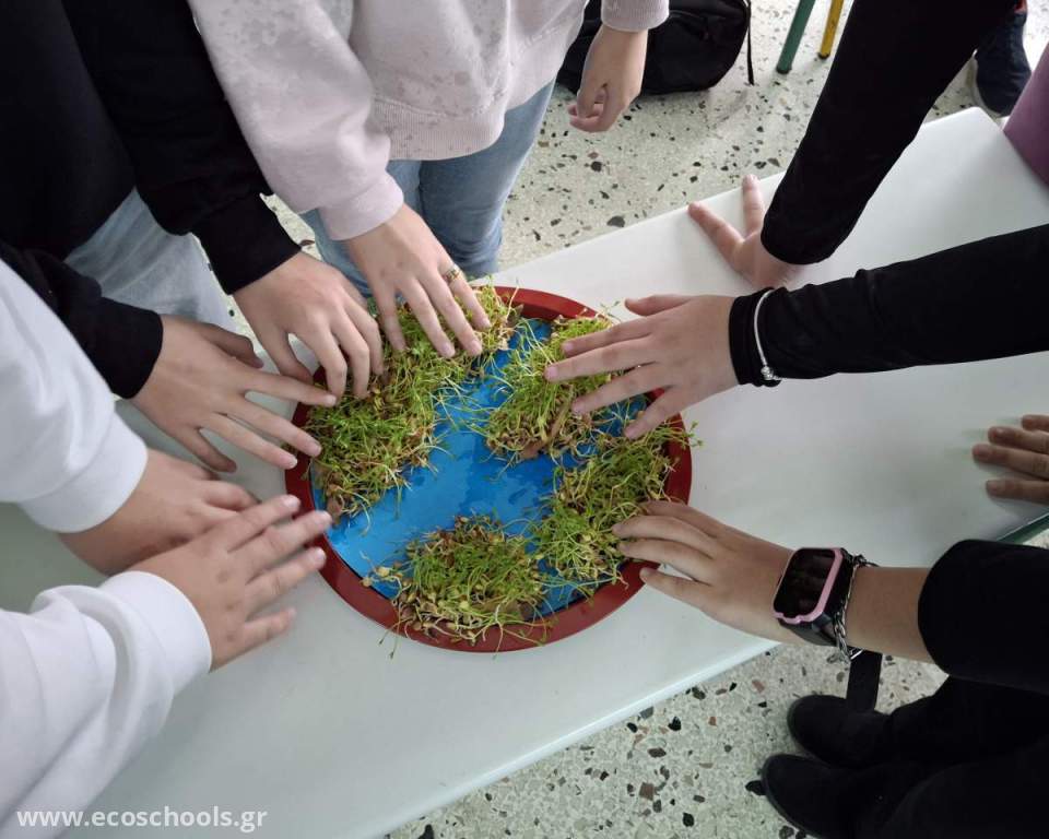 Η δημιουργία της Γης με τους ωκεανούς χρησιμοποιώντας τις φυτρωμένες φακές είναι μια έξυπνη και εντυπωσιακή σύνδεση των Φυσικών Επιστημών, της Τέχνης και της Περιβαλλοντικής Εκπαίδευσης.