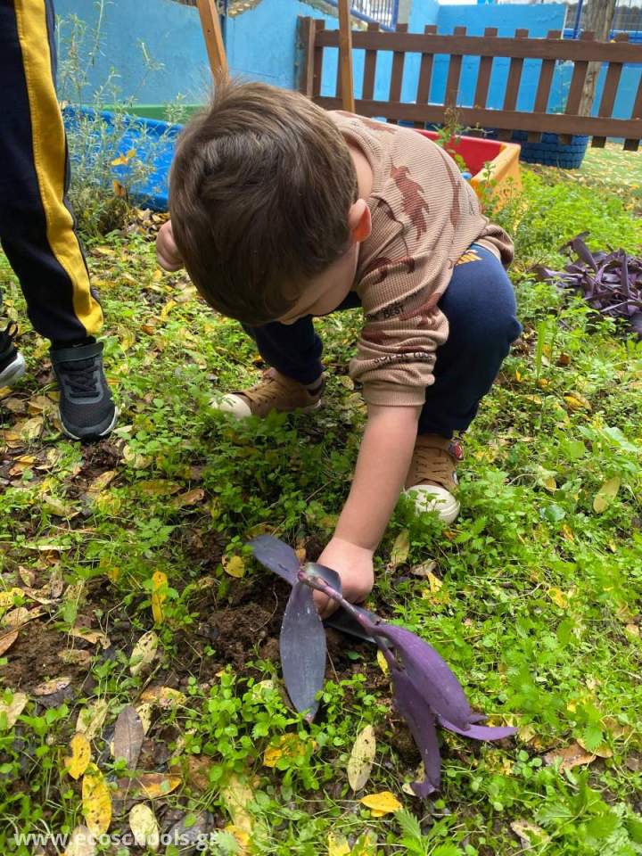 Σήμερα βγήκαμε στην αυλή του νηπιαγωγείου μας με πολλή χαρά για να φυτέψουμε νέα φυτά: τηλέγραφους και αλόες  που θα ομορφύνουν την πίσω αυλή μας. Τα παιδιά συμμετείχαν ενεργά σε όλα τα στάδια∙ από το σκάψιμο , το φύτεμα και το πότισμα μέχρι τη φροντίδα των φυτών μας.