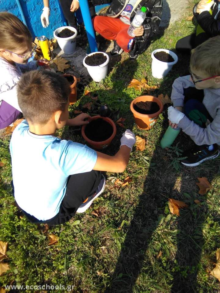 Με τους μαθητές της Β´τάξης φυτέψαμε σπόρους και παρακολουθούμε την ανάπτυξη τους.Οι μαθητές μαθαίνουν για την προέλευση των τροφίμων και τη σημασία της τοπικής και βιώσιμης καλλιέργειας.Η παραγωγή τοπικών βιώσιμων τροφίμων θα ενδυναμώσουν την Οικολογική τους συνείδηση.