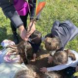 Με αφορμή την Παγκόσμια ημέρα δασών στις 21 Μαρτίου αποφασίσαμε με τα παιδιά να φυτέψουμε κάποια καινούργια δέντρα στο σχολείο μας. Αφού είχαμε ήδη ζητήσει τη συνδρομή του δασαρχείου για την προμήθεια κάποιων δεντρυλλίων αλλά και των γονέων για να μας βοηθήσουν με το σκάψιμο, υποδεχτήκαμε με χαρά δύο μηλιές, μια κερασιά, μια ελιά, ένα κυπαρίσσι αλλά και καλλωπιστικά φυτά. Αφού σκάψαμε, φυτέψαμε, ρίξαμε χώμα από το δικό μας κομποστ, ποτίσαμε τα νέα μας δέντρα, τραγουδήσαμε ένα τραγούδι που ετοιμάσαμε εδώ και μέρες με τα παιδιά.