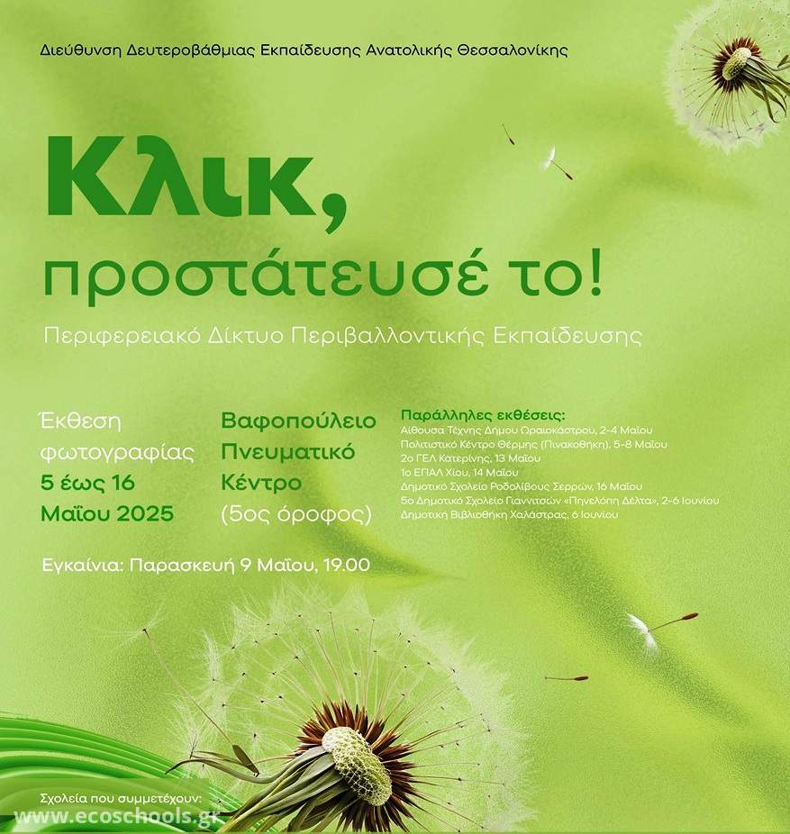 @ «Κλικ, προστάτευσέ το!» είναι ο τίτλος ενός δικτύου και μιας εκπαιδευτικής δράσης, που στόχο έχουν τον εντοπισμό και την ανάδειξη σημείων μιας περιοχής, που χρήζουν ανάδειξης και προστασίας.
