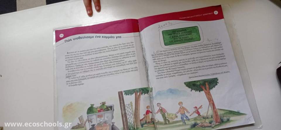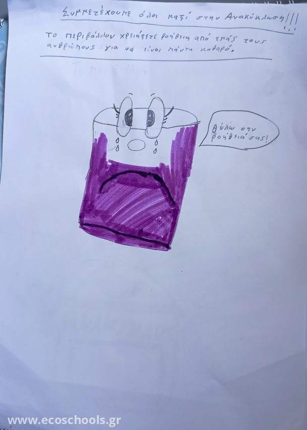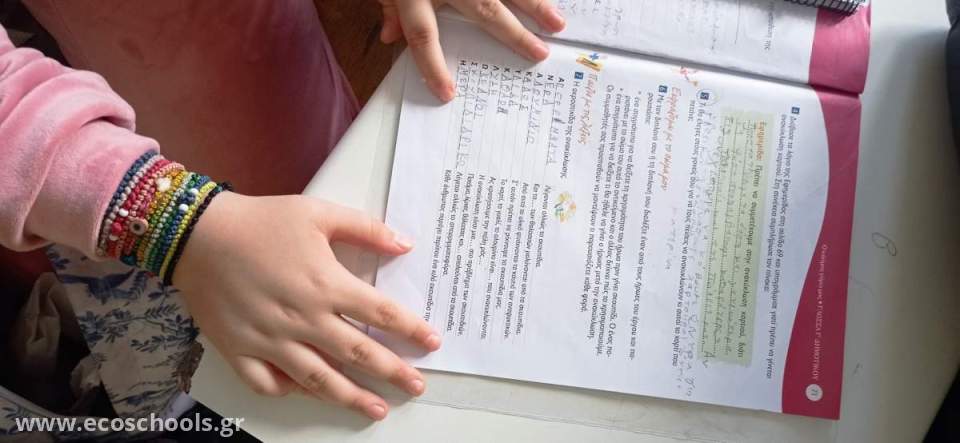 Στο μάθημα της Γλώσσας της Γ' Δημοτικού,, με τίτλο "Ο Κόσμος γύρω μας" υλοποιήθηκε δραστηριότητα στο τμήμα Γ΄2, με στόχο τη συνειδητοποίηση των παιδιών για τον κόσμο που μας περιβάλλει και τη σπουδαιότητα της ανακύκλωσης, μέσα από φύλλα εργασίας που ήδη υπάρχουν στο βιβλίο τους, με ποικίλες δραστηριότητες.