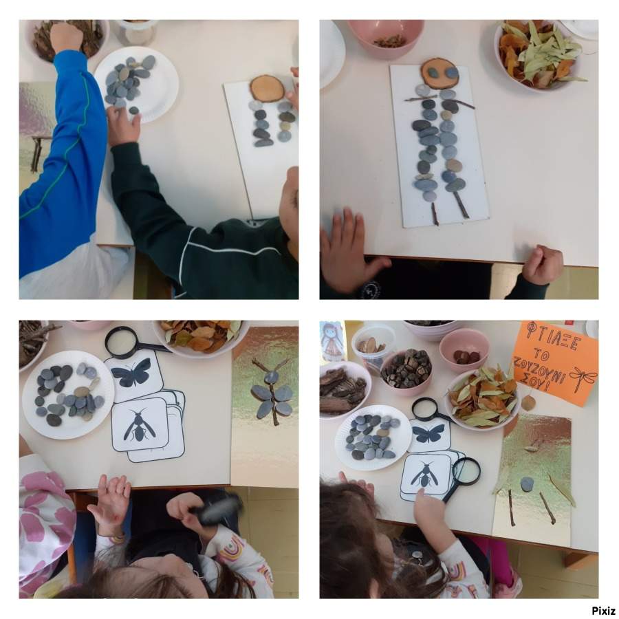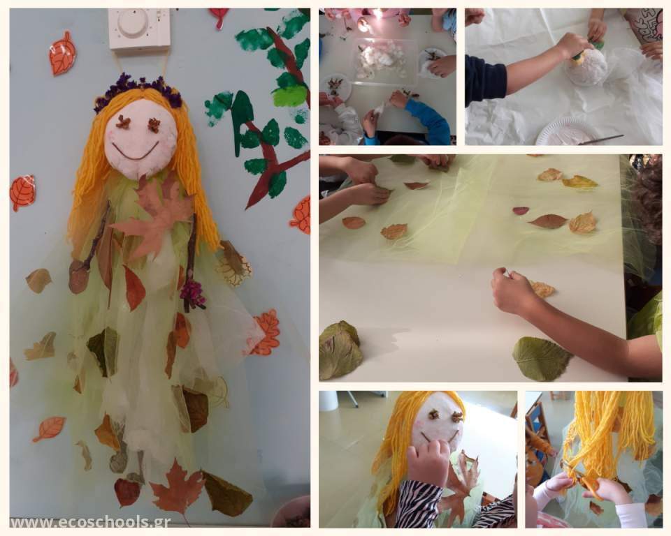 Κατά τη φετινή χρονιά συμμετέχουμε σε etwinning έργο με τίτλο " Hundred ways to be" που βασίζεται στη προσέγγιση Reggio Emilia.Προσκαλεί τους μικρούς μαθητές να εξερευνήσουν τη σύνδεση μεταξύ φύσης, μύθου και δημιουργικότητας μέσα από τη φωνή της Γαίας – της προσωποποίησης της Γης στην ελληνική μυθολογία. Η πρώτη αποστολή που μας ανέθεσε η Γαία ήταν να φτιάξουμε τη δική μας μασκότ με υλικά της φύσης. Συζητήσαμε ποια είναι υλικά της φύσης και τι θα μπορούσαμε να χρησιμοποιήσουμε για να φτιάξουμε τη μασκότ μας. Τα παιδιά πρότειναν ξυλάκια, φύλλα, λουλούδια, κυπαρισσόμηλα, φλούδες δέντρων. Επίσης μια μαθήτρια μας είχε φέρει βαμβάκι από το χωράφι της οικογένειάς της. Σκεφτήκαμε να χρησιμοποιήσουμε βαμβάκι για το κεφάλι, φύλλα για το φόρεμα , ξυλάκια για τα χέρια και τα πόδια. Έτσι ξεκινήσαμε. Αφού ετοιμάσαμε τη μασκότ προχωρήσαμε στην οργάνωση μιας γωνιάς φύσης. Τα παιδιά αναζήτησαν στην αυλή του σχολείου ποικίλα υλικά. Δόθηκε σε κάθε παιδί ένα χάρτινο ποτηράκι και ξεκίνησαν την αναζήτηση. Έπειτα ταξινομήσαμε τα υλικά που συγκεντρώσαμε και οργανώσαμε τη γωνιά μας.