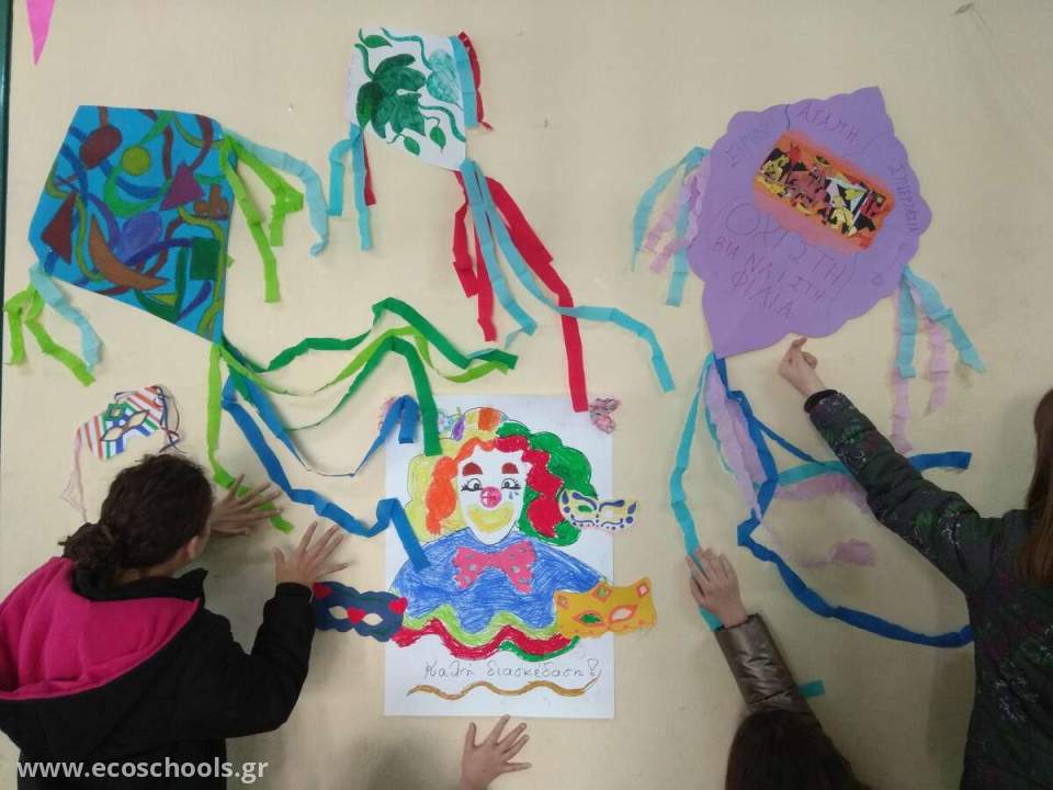 Συγκεκριμένα: * Ως μέλη της διεθνούς κοινότητας των «Οικολογικών σχολείων» αξιοποιήσαμε υλικά προς ανακύκλωση στις δημιουργίες μας, μεταδίδοντας περιβαλλοντικά μηνύματα * τα έργα Land Art των παιδιών, στο σχολικό κήπο του Σχολείου μας, τους έδωσαν ιδιαίτερη χαρά * Τα παιδιά φιλοτέχνησαν ομαδικές εργασίες και αφίσες για την Παγκόσμια Ημέρα Περιβαλλοντικής Εκπαίδευσης στις 14 Οκτωβρίου 2024 * Συμμετείχαμε στο διεθνές πρόγραμμα του «Plastic Clever Schools» * Έργα χαρτοδιπλωτικής (origami) δημιουργήθηκαν από χαρτιά προς ανακύκλωση * Το δημιουργικό παιχνίδι ένωσε τα παιδιά διαφορετικών τάξεων, με διαθεματική προσέγγιση και την σύνδεση εικαστικών και φυσικής αγωγής * Κάναμε ομαδικές εργασίες εμπνευσμένες από τα έργα των μεγάλων δημιουργών της Ιστορίας της Τέχνης και τα παιδιά συμπορεύτηκαν μαθαίνοντας για Έλληνες και ξένους δημιουργούς πάνω στους χαρταετούς που φιλοτέχνησαν. Από τον Λάμπρο Ορφανό, την Έλλη Μουρέλου – Ορφανού, τον Γαΐτη, την Βάσω Κατράκη, τον Παναγιώτη Τέτση, τον Απέργη και άλλους Έλληνες δημιουργούς έως τον Vincent Van Gogh, τον Paul Klee, τον Joan Miró, τον Kandinsky, τον Leonardo Da Vinci και άλλους.