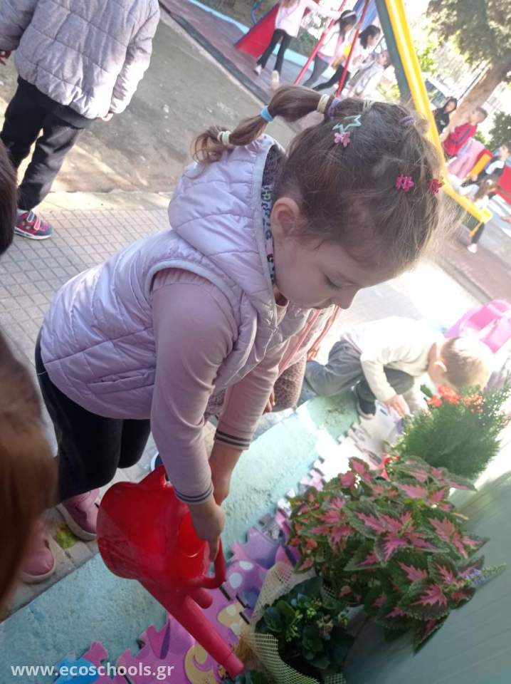Καθημερινά η ομάδα παρατήρησης και φροντίδας των φυτών μας (3 βοηθοί, που ορίζονται στην πρωινή προσέλευση ), στο διάλειμμα δουλεύουν με μεράκι και όρεξη.