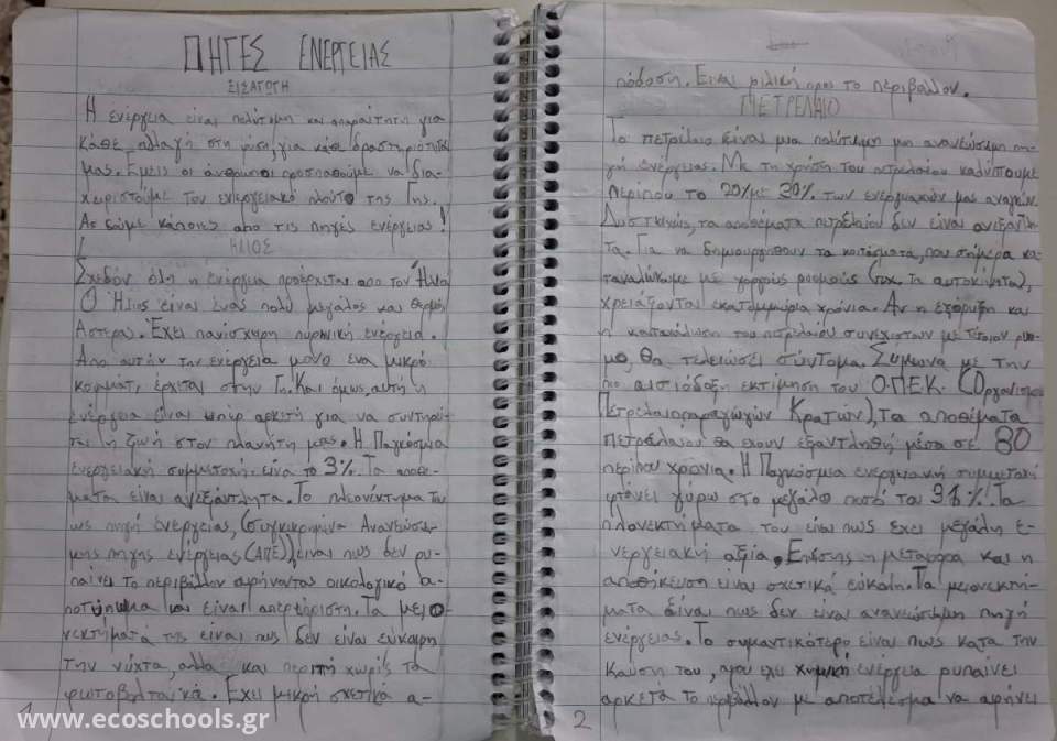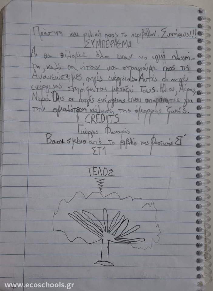 Μία εξαιρετική εργασία από τον μαθητή Γιώργο Φαναρά της ΣΤ1 τάξης του σχολείου μας, όπου μας περιγράφει όλες τις μορφές ενέργειας που χρησιμοποιεί η ανθρωπότητα σήμερα και το αποτύπωμα τους στο περιβάλλον.