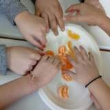 Οι μαθητές της Δ’, Ε’ και Στ’ τάξης είχαν την ευκαιρία να γνωρίσουν φρούτα και λαχανικά της εποχής και της περιοχής τους, να ενημερωθούν για τη διατροφική τους αξία και να τα αξιοποιήσουν δημιουργικά, μεταμορφώνοντάς τα σε καλλιτεχνικές χριστουγεννιάτικες συνθέσεις. Μέσα από τη δράση αυτή, ενισχύθηκε η σύνδεση της υγιεινής διατροφής με τη χαρά της δημιουργίας και της ομαδικής εργασίας.
