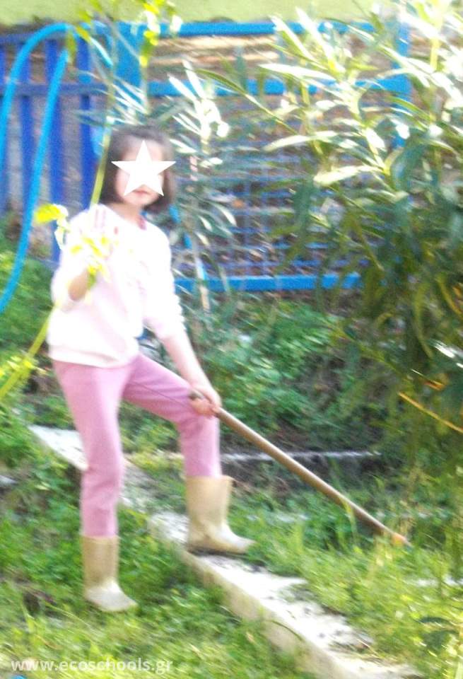 # Οι μεγάλες σχολικές αυλές με τα πολλά δέντρα, όπως η δική μας, απαιτούν καθάρισμα όλο το χρόνο. Διαρκής πονοκέφαλος είναι οι πευκοβελόνες που πρέπει να καθαρίζονται τακτικά, για λόγους πυρασφάλειας πρώτα -πρώτα). Πρόβλημα επίσης είναι και τα φύλλα από τα φυλλοβόλα δέντρα, ιδίως τις μουριές, που σχηματίζουν παχύ στρώμα στο έδαφος, όταν αρχίσουν να πέφτουν στα μέσα του φθινοπώρου.
