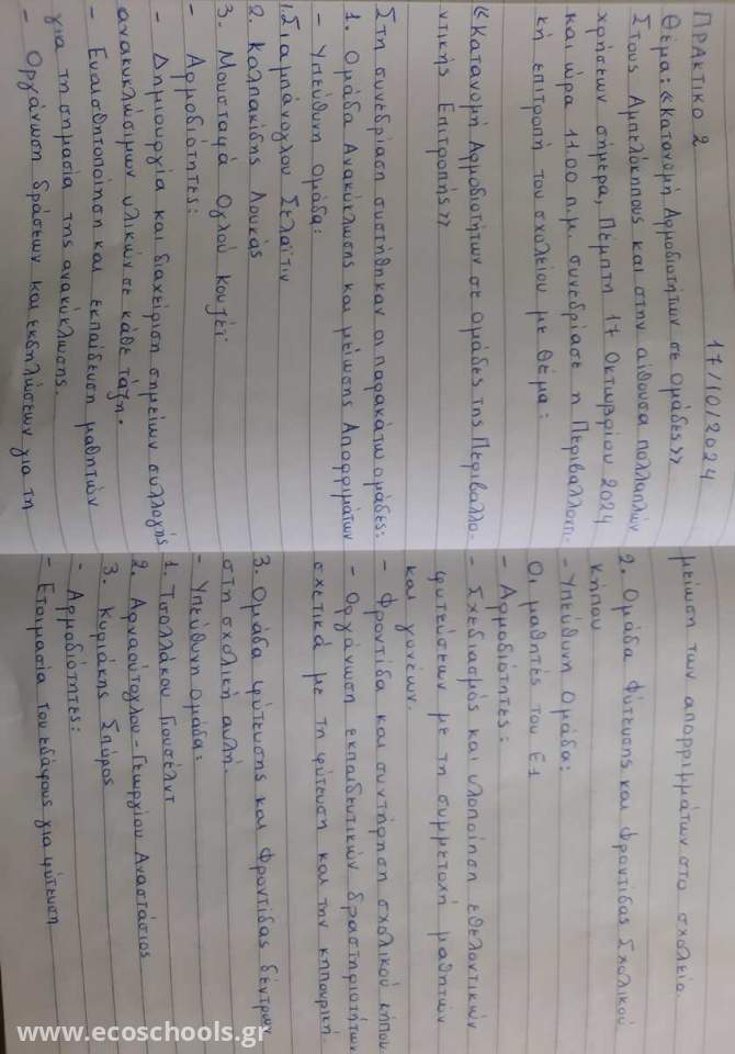 Παρακάτω γίνεται η δημοσίευση των πρακτικών των δύο πρώτων συνεδριάσεων της περιβαλλοντικής επιτροπής του σχολείου.