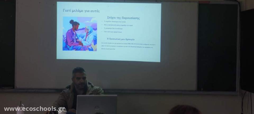 Η ομιλία του εντάχθηκε στις δράσεις του σχολείου μας για την ευαισθητοποίηση των μαθητών σχετικά με τις αξίες του σεβασμού, της αλληλεγγύης και της υπευθυνότητας απέναντι στους συνανθρώπους μας, στοιχεία που χαρακτηρίζουν τον ενεργό και υπεύθυνο παγκόσμιο πολίτη.
