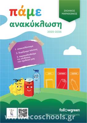 Συλλέγει στους ειδικούς κάδους που έχουν τοποθετηθεί, από τον Δήμο, εντός του σχολείου: