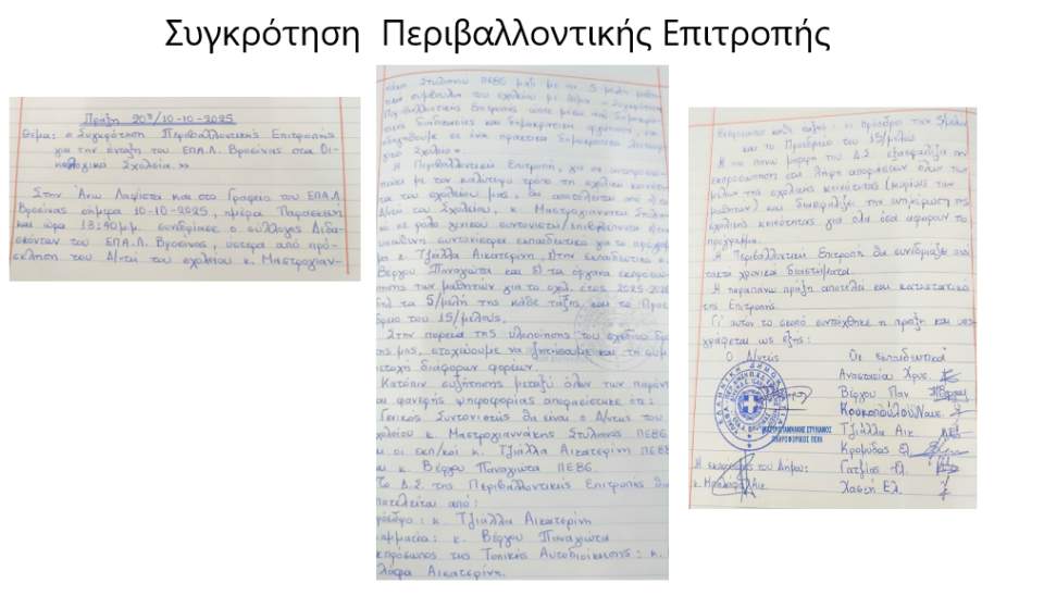 Σήμερα,10 Οκτωβρίου 2025, ημέρα Παρασκευή και ώρα 13:40 μ.μ., στην αίθουσα Η/Υ ΕΠΑΛ Βροσίνας, κατόπιν πρόσκλησης του Δ/ντή κ. Μαστρογιαννάκη Στυλιανού συνήλθαν οι εκπ/κοί και τα 5 μελή μαθητικά συμβούλια του Σχολείου μας με σκοπό τη συγκρότηση Περιβαλλοντικής Επιτροπής, ώστε μέσα από δημοκρατικές διαδικασίες και δημοκρατική οργάνωση, να οδηγηθούμε σε ένα πρακτικά δημοκρατικό λειτουργικό Σχολείο.
