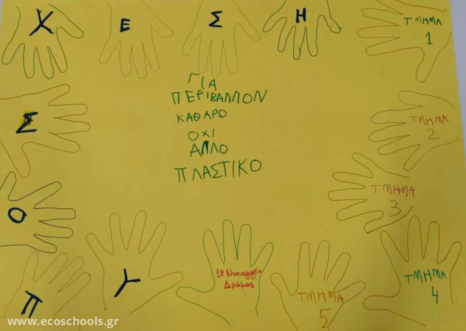 Αφού ενημερωθήκαμε για την Διεθνή Ημέρα Δράσης για την Πλαστική Ρύπανση, δηλώσαμε συμμετοχή στο πρόγραμμα   plastic clever schools  που είναι σχεδιασμένο από την Common Seas and Kids against plastic, για την μείωση των πλαστικών απορριμάτων με τους μαθητές να βρίσκονται στο επίκεντρο της Δράσης! Με τρία απλά αλλά ισχυρά στάδια- Έμπνευση, Έρευνα και Δράση- τα παιδιά προσπαθούν να σταματήσουν την ροή της πλαστικής ρύπανσης στο σχολείο, την κοινότητα και το μέλλον τους. Την Παρασκευή 7 Νοεμβρίου, συμμετείχαμε σε σχολική συνέλευση όπου παρακολουθήσαμε ζωντανά, ενημέρωση από τους ειδικούς σχετικά με το πρόβλημα και το σημαντικό έργο που επιτελούν. Στη συνέχεια αναλάβαμε δράση πραγματοποιώντας καθαρισμό και συλλογή απορριμάτων από τη γειτονιά μας. Γυρνώντας στην τάξη, τα παιδιά αποτύπωσαν εικαστικά το αίτημα της θαλάσσιας χελώνας και των παιδιών της για βοήθεια, αποφάσισαν να ενώσουν τα χέρια και τις φωνές τους και με το σύνθημα "ΓΙΑ ΠΕΡΙΒΑΛΛΟΝ ΚΑΘΑΡΟ ΟΧΙ ΑΛΛΟ ΠΛΑΣΤΙΚΟ", δώσαμε την υπόσχεση να ενταχθούμε στα Έξυπνα Σχολεία χωρίς Πλαστικό!