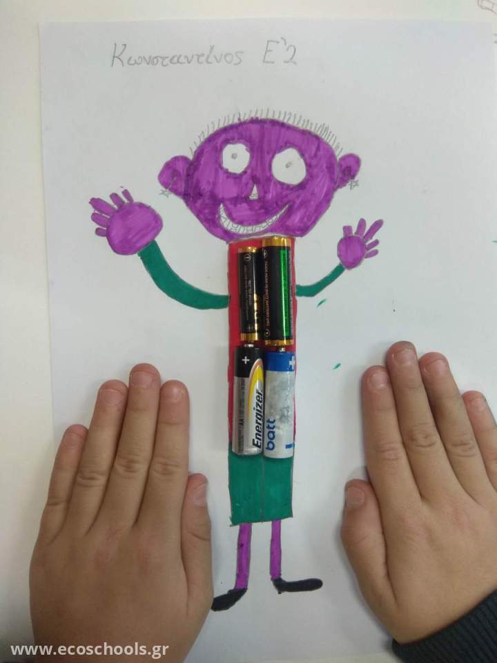 Στο μάθημα των Εικαστικών τα παιδιά δημιούργησαν τον δικό τους ήρωα - μπαταριούλη κι έφτιαξαν μικρές ιστορίες ανακύκλωσης.