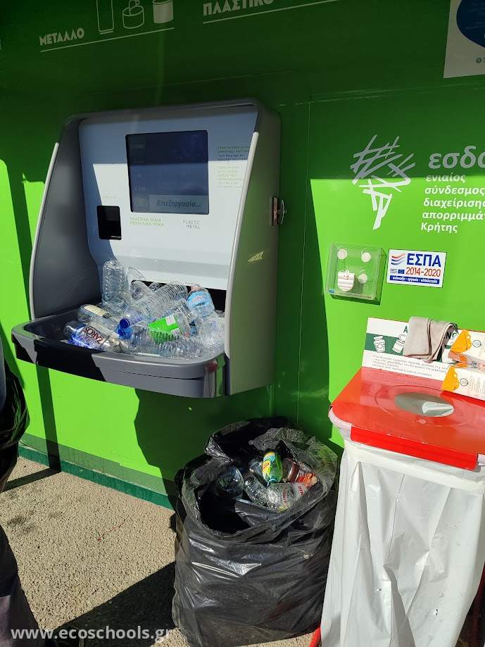 Το σχολείο μας συμμετέχει στην ανταποδοτική ανακύκλωση πλαστικών μιας χρήσης. Στόχος μας είναι τα πλαστικά να μην καταλήξουν στο περιβάλλον και κυρίως στη θάλασσα. Κατά την πρώτη εβδομάδα δράσης ανακυκλώθηκαν 650 πλαστικά μπουκάλια! Παράλληλα, οι πλαστικές σακούλες μίας χρήσης με τις οποίες οι γονείς και τα παιδιά φέρνουν τα μπουκάλια στο σχολείο επαναχρησιμοποιούνται στα καλαθάκια απορριμμάτων κάθε τάξης προκειμένου να μειώσουμε το οικολογικό μας αποτύπωμα στη χρήση πλαστικού μιας χρήσης.