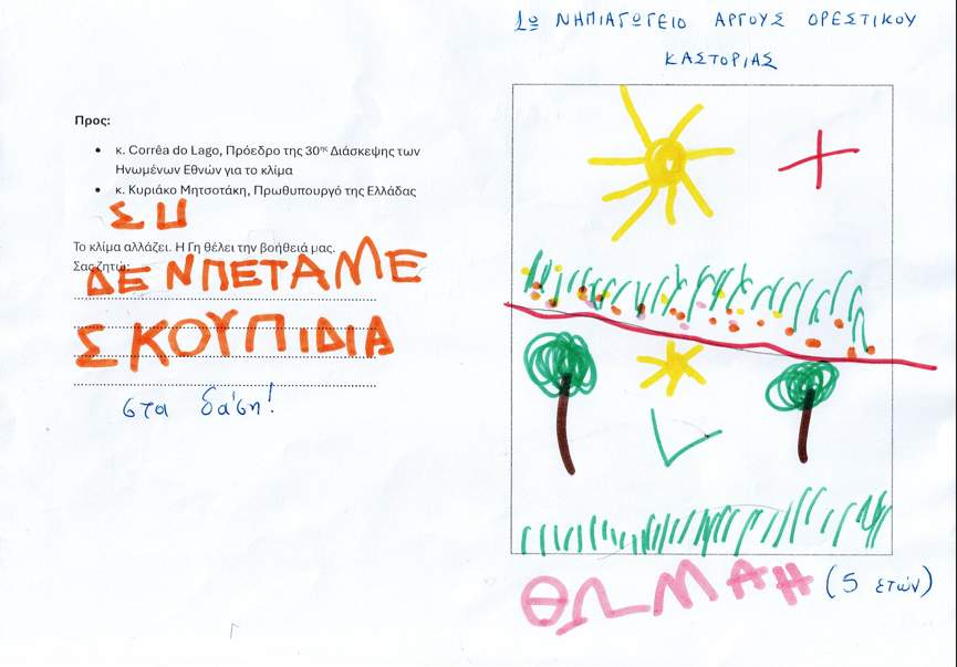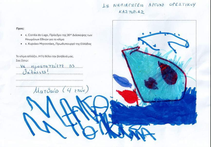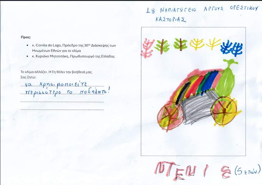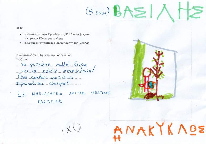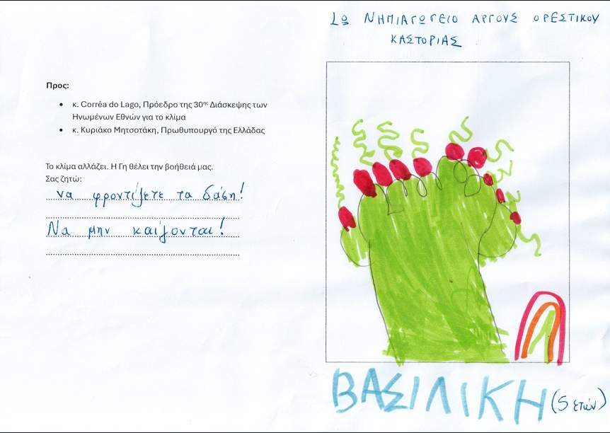 To 1o Νηπιαγωγείο Άργους Ορεστικού συμμετείχε στην κοινή δράση που υλοποιεί η Ελληνική Εταιρία Προστασίας της Φύσης με το WWF Ελλάς, σχετικά με την δημιουργία και αποστολή καρτών/επιστολών προς τους παγκόσμιους ηγέτες που συνεδριάζουν στην COP30 της Βραζιλίας, 10-21 Νοεμβρίου 2025.