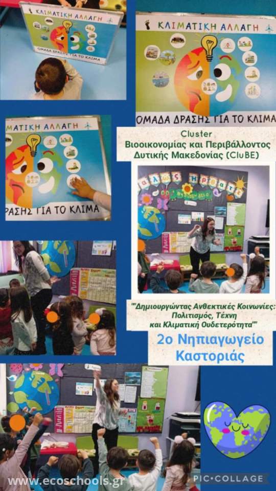 Το Νηπιαγωγείο μας συμμετέχει φέτος στο εκπαιδευτικό πρόγραμμα «Δημιουργώντας Ανθεκτικές Κοινωνίες: Πολιτισμός, Τέχνη και Κλιματική Ουδετερότητα», το οποίο στοχεύει στην ενημέρωση και ευαισθητοποίηση των παιδιών γύρω από την προστασία του περιβάλλοντος και την αντιμετώπιση της κλιματικής αλλαγής, μέσα από βιωματικές και δημιουργικές δραστηριότητες.