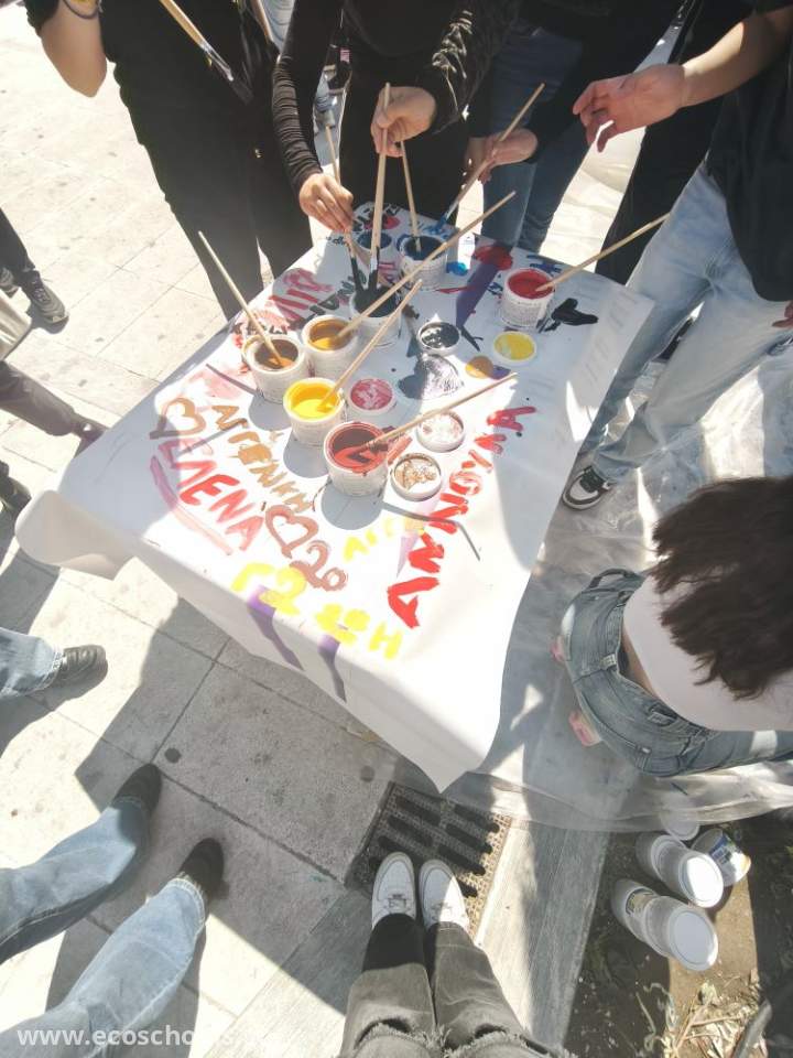 Οι μαθητές μας αφού άκουσαν με ενδιαφέρον τις τοποθετήσεις του Δημάρχου Τυρνάβου , και του Διευθυντή της Δ.Ε.Υ.Α.Τ., σε συνεργασία με τους μαθητές του 1ου Γυμνασίου Τυρνάβου δημιούργησαν ένα πανό με σύνθημα « SOSΤΕ το ΝΕΡΟ! Κάθε σταγόνα μετράει…».