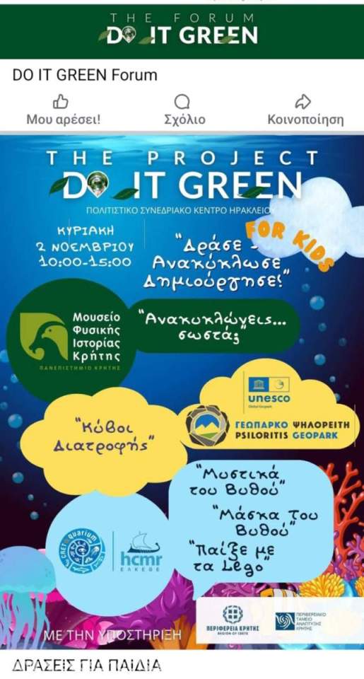 Το Ειδικό Δημοτικό Σχολείο Κωφών και Βαρηκόων Ηρακλείου είχε τη χαρά και την τιμή να συμμετέχει στο περιβαλλοντικό φόρουμ «DO IT GREEN», μια διοργάνωση αφιερωμένη στη βιωσιμότητα, την ανακύκλωση και την οικολογική συνείδηση.