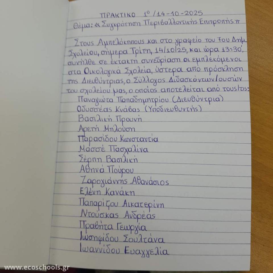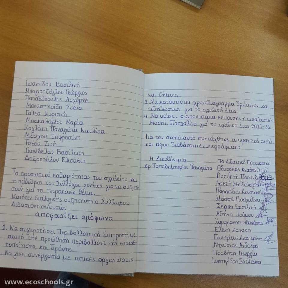 Η νέα σχολική χρονιά ξεκίνησε με τη σύσταση περιβαλλοντικής επιτροπής και τον γενικό προγραμματισμό δράσεων για το σχολικό έτος 2025-26. Το 1ο πρακτικό γράφηκε και υπογράφηκε από όλους τους συμμετέχοντες.
