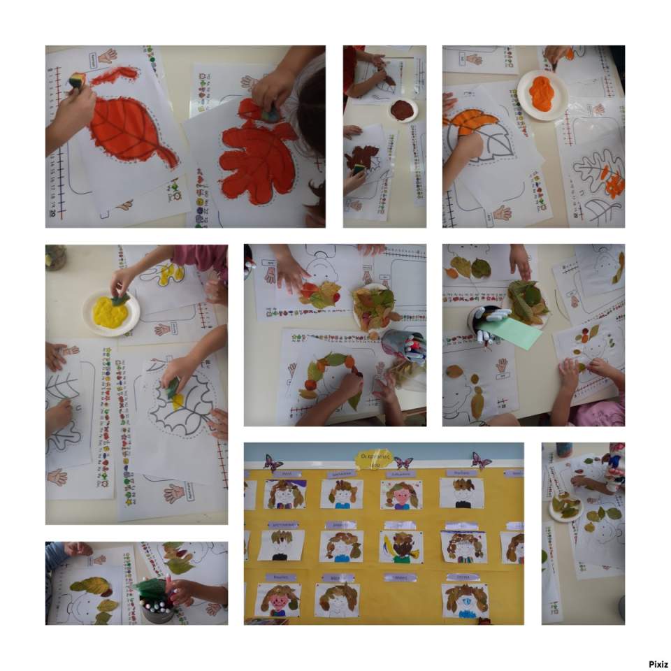 Ζωγραφίσαμε φύλλα στα χρώματα του φθινοπώρου ανά ομάδες και στη συνέχεια ζητήσαμε από τα παιδιά να συγκεντρώσουν φύλλα φθινοπωρινά σε κάποια βόλτα τους το σαββατοκύριακο και τα χρησιμοποιήσαμε για να φτιάξουμε "φθινοπωρούληδες"