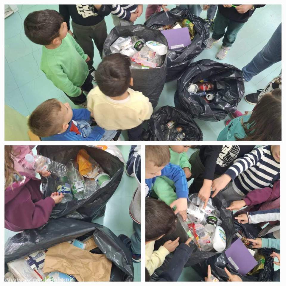 Αφού επιστρέψαμε στην τάξη ξεχωρίσαμε τα σκουπίδια που μαζέψαμε σε “πλαστικά” και “άλλα”. Επίσης αναφέραμε πως απ’ όλα τα πλαστικά αντικείμενα που χρησιμοποιούμε στην καθημερινή μας ζωή, μόνο τα μισά περίπου ανακυκλώνονται. Τα υπόλοιπα δυστυχώς καταλήγουν στη χωματερή ή στη θάλασσα και χρειάζονται εκατοντάδες χρόνια για να λιώσουν, προκαλώντας έτσι τεράστια μόλυνση τόσο στο χερσαίο, όσο και υδάτινο οικοσύστημα.