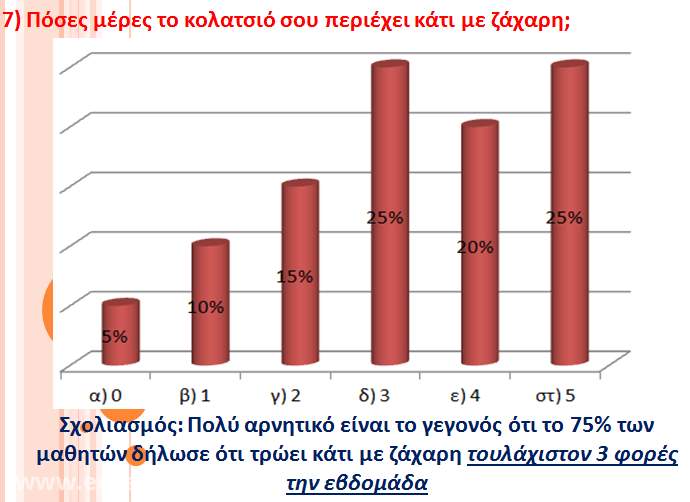 Το 75% τρώει κάτι που περιέχει ζάχαρη τουλάχιστον 3 φορές την εβδομάδα.