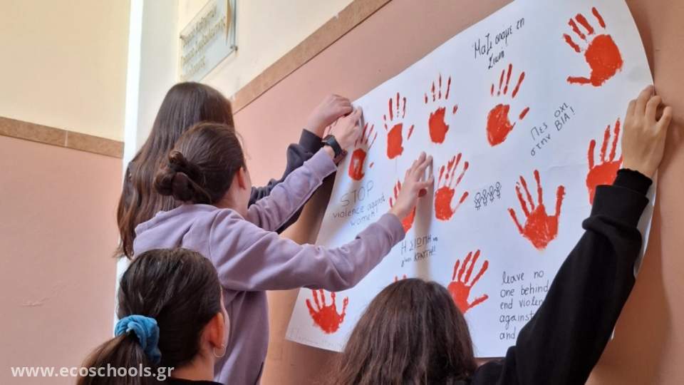 25η Νοεμβρίου: Παγκόσμια Ημέρα για την Εξάλειψη της Βίας κατά των Γυναικών και τα κορίτσια του α1 γυμνασίου “έβαψαν το σχολείο πορτοκαλί”! #Orange the World! Leave no one behind! End violence against Women and Girls!