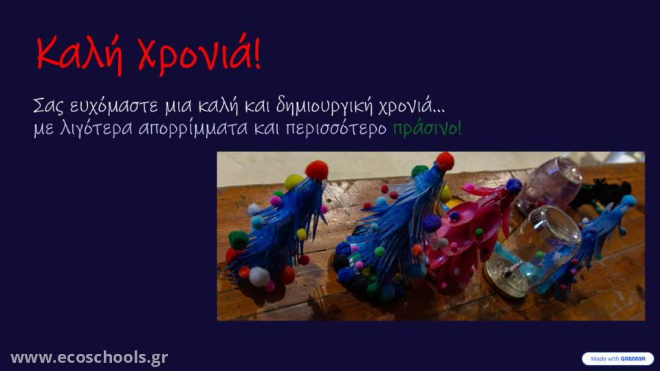 Η ομάδα μας οργάνωσε εργαστήριο κατασκευής χριστουγεννιάτικων στολιδιών και διακοσμητικών από υλικά σε β΄ χρήση. Η δράση πραγματοποιήθηκε στις 23 Δεκεμβρίου 2025. Στόχος μας είναι να ευαισθητοποιήσουμε τους συμμαθητές μας δείχνοντάς τους πώς μπορούν να αξιοποιήσουν τις συσκευασίες και τα αντικείμενα που δεν χρειάζονται πια, ώστε να μειώσουμε όλοι μαζί τα απορρίμματα.