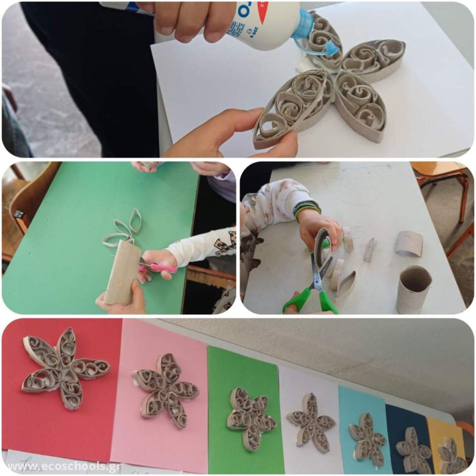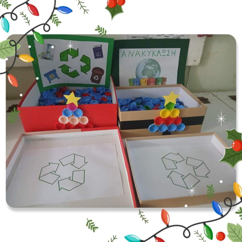Στο πλαίσιο της ίδιας δράσης, οι μαθητές και οι μαθήτριες της Α΄ τάξης κατασκεύασαν χριστουγεννιάτικες κάρτες με ρολά από χαρτί υγείας. Μέσα από τη δημιουργική αυτή διαδικασία, τα παιδιά έστειλαν τις χριστουγεννιάτικες ευχές τους, μεταφέροντας παράλληλα ένα σημαντικό μήνυμα περιβαλλοντικής ευαισθητοποίησης.