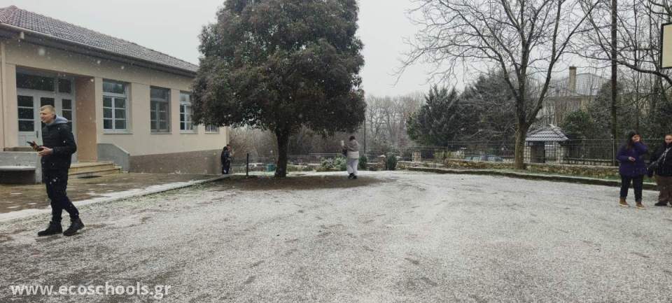Οι μαθητές βγήκαν στην αυλή του σχολείου ( 9-1-2026) για να χαρούν το χιόνι και να απολαύσουν τη μαγεία της φύσης. Το λευκό τοπίο είχε καλύψει κάθε γωνιά, δημιουργώντας μια ήρεμη και γαλήνια ατμόσφαιρα που ενθουσίασε μικρούς και μεγάλους. Με χαμόγελα και γέλια, περπάτησαν στο χιόνι, έπαιξαν και παρατήρησαν το φυσικό περιβάλλον γύρω τους.