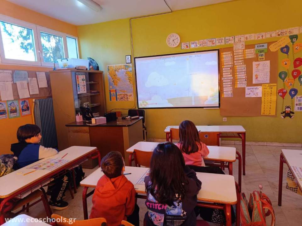 Στο πλαίσιο της συμμετοχής του σχολείου μας στο πρόγραμμα «Οικολογικά Σχολεία -Ενέργεια»,οι μαθητές και οι μαθήτριες  της Α’ Δημοτικού ,παρακολούθησαν εκπαιδευτικά βίντεο με στόχο την εισαγωγή τους σε βασικές έννοιες που αφορούν την ενέργεια, τις ανανεώσιμες πηγές ενέργειας και την ανάγκη προστασίας του περιβάλλοντος.