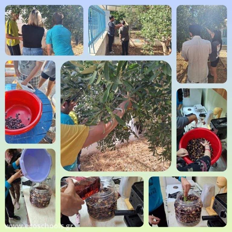 Οι μαθητές μας μάζεψαν και διάλεξαν τις ελιές από την αυλή του σχολείου μας!!!Αφού ακολούθησαν τη διαδικασία του ξεπικρίσματος ήρθε η ώρα για την παρασκευή!!!!Ζυγίσαμε τις ελιές, φτιάξαμε την άλμη με νερό, αλάτι, ξύδι και αρωματικά φυτά από τον κήπο μας!!!