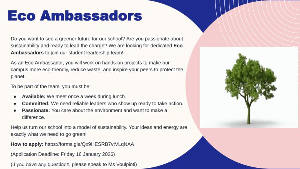The following form was used to advertise for eco ambassadors:
