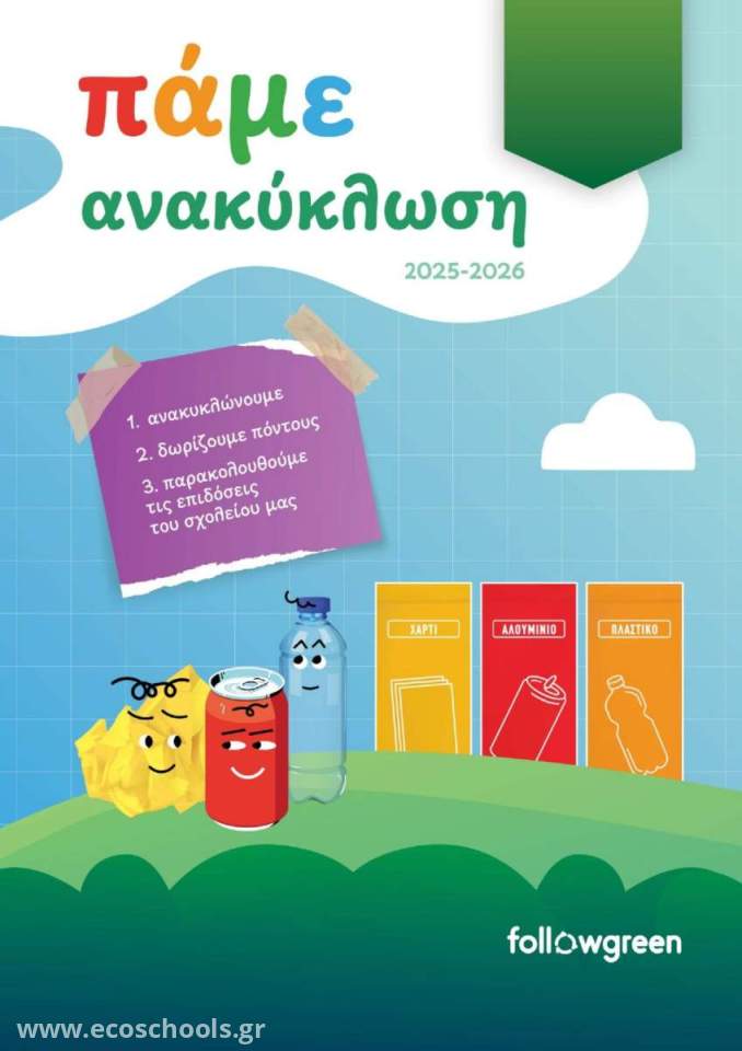 Πιστοί στη δέσμευσή μας για την προστασία του Περιβάλλοντος και σε συνεργασία με τους γονείς και κηδεμόνες, συνεχίζουμε την ανακύκλωση πλαστικού, χαρτιού και από φέτος, τη σχολική χρονιά 2025-2026 και αλουμινίου!