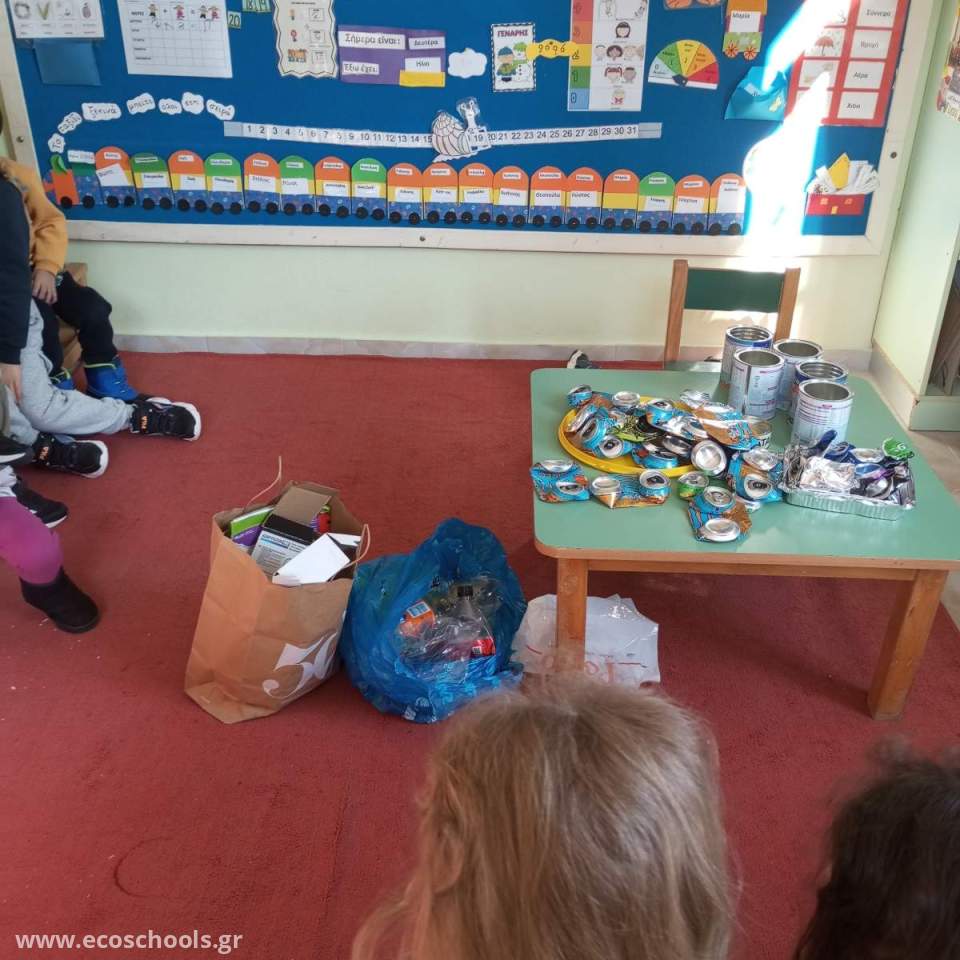 Καθημερινά, συλλέγουμε ανακυκλώσιμα υλικά, τα κατηγοριοποιούμε και τα τοποθετούμε στους αντίστοιχους κάδους που μας προμήθευσε ο Δήμος μας. Κάθε 15 περίπου μέρες γίνεται η καταμέτρηση του βάρους τους από υπεύθυνους του Δήμου, ανταμείβοντάς μας με πόντους κι ενισχύοντας έτσι την προσπάθειά μας!