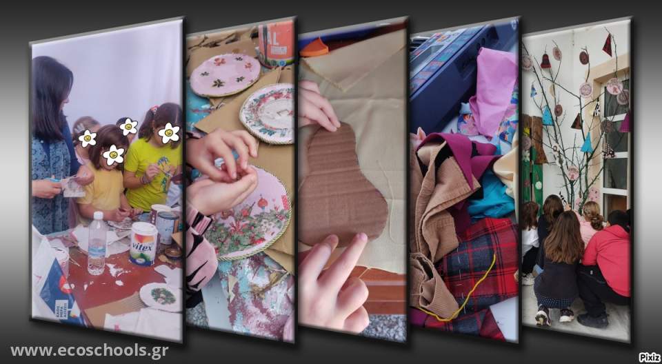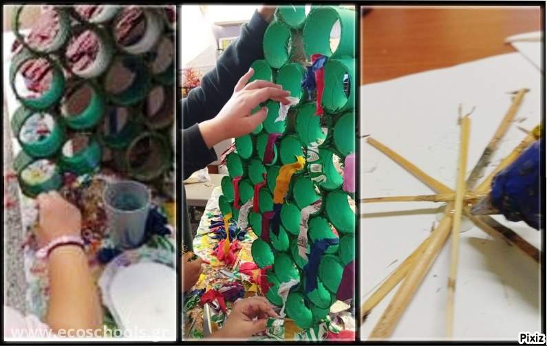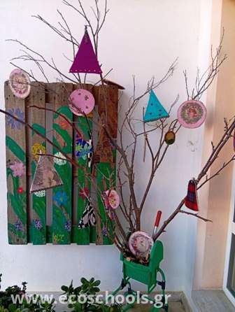 Στα πλαίσια της δράσης "δημιουργικά διαλείμματα" και κατά τη συμμετοχή των μαθητών στο "Εικαστικό εργαστήρι" υπό την εποπτεία και τον συντονισμό της Διευθύντριας του σχολείου, οι μαθητές δημιουργούς χριστουγεννιάτικες κατασκευές για τον στολισμό του σχολείου. Χρησιμοποιούν ανακυκλώσιμα υλικά σε ένα μαγικό πάντρεμα με υλικά της φύσης.