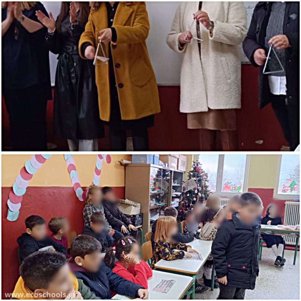Οι μαθητές/τριες του σχολείου συμμετείχαν σε μια βιωματική χριστουγεννιάτικη δράση αξιοποιώντας αδιάθετες εφημερίδες από τον τοπικό τύπο. Σε κάθε παιδί δόθηκε ένα φύλλο εφημερίδας, πάνω στο οποίο έγραψε τη δική του ευχή για τις γιορτές των Χριστουγέννων και της Πρωτοχρονιάς. Οι εκπαιδευτικοί, κρατώντας τρίγωνα, τραγούδησαν τα κάλαντα. Αντί για χρήματα, οι μαθητές/τριες πρόσφεραν τις γραπτές ευχές τους.